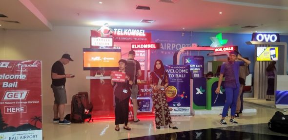 On your way out past the row of taxi and transport drivers, there are a couple of telco kiosks selling local SIM cards. Buying a local SIM card is a great idea because they are cheap and while WiFi is almost ubiquitous in Bali at hotels, cafes and restaurants you are better of having full-time reliable internet connectivity via a local SIM card.